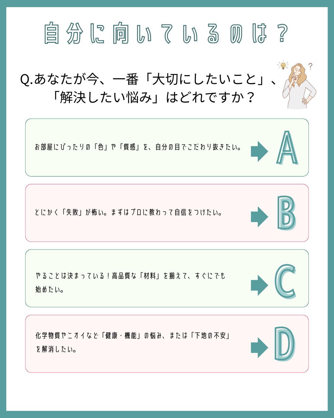 A. を選んだあなたへ|カラーサンプル(無料)がおすすめ