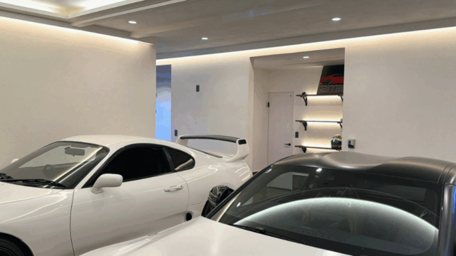 白い漆喰の壁と天井が愛車を美しく照らします。