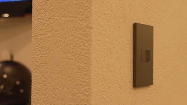 電球色の間接照明が漆喰の質感を際立たせます