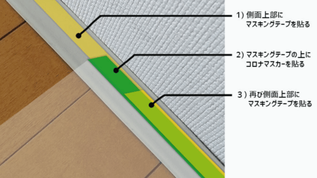 - コロナマスカーの上にマスキングテープを壁とテープの間に1mm間隔が空くように貼る