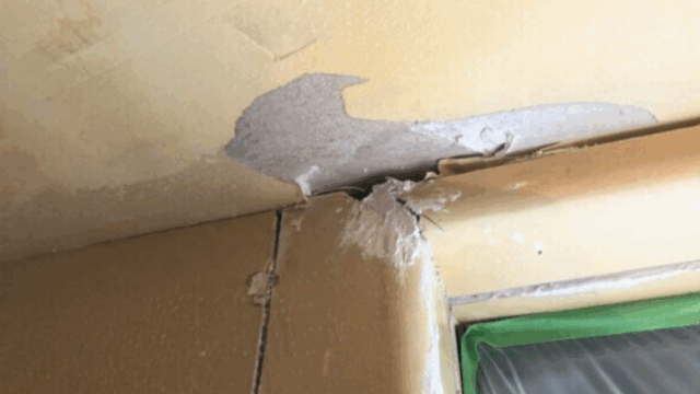 そのように割れた石膏ボードですが、石膏を紙でサンドイッチしている構造なので割れたとしても表面の紙の強度で繋がっていることが多いです。