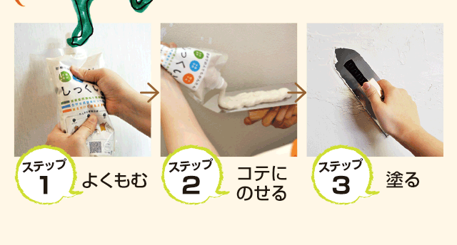 チューブタイプ本格漆喰は、出荷時に練り済みの状態でお届けするため、開封後、少し混ぜかえすだけですぐに塗ることができます。